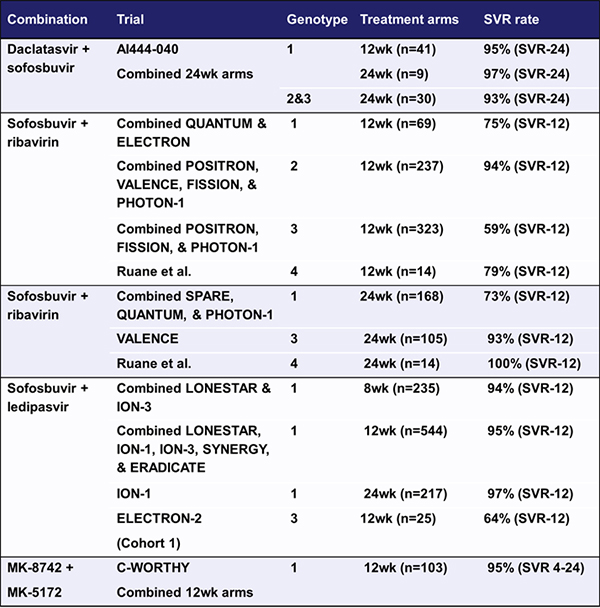 Clinical trials of HCV DAAs were reviewed to identify combinations with: