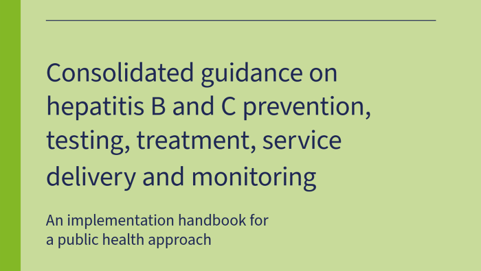 Access ‘Consolidated guidance on hepatitis B and C prevention, testing, treatment, service delivery and monitoring: an implementation handbook for a public health approach’ here.