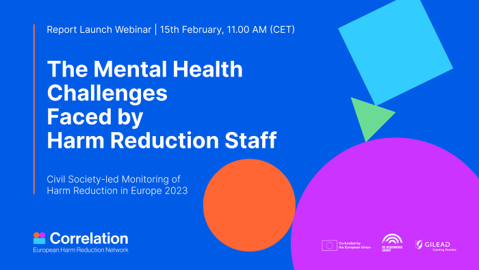 On 15 February 2024 the Correlation – European Harm Reduction Network (C-EHRN) will host a webinar to mark the publication of The Mental Health Challenges Faced by Harm Reduction Staff.