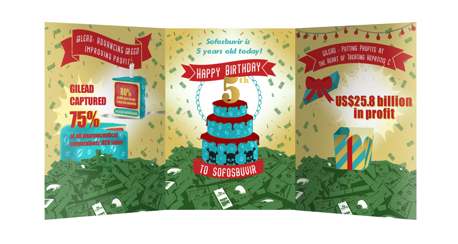 6 December 2018, Paris, France, New York, NY— People living with hepatitis C, access to medicines activists, and the medical community around the world “mark” the fifth birthday of the first all-oral, one dose per day cure sofosbuvir (Sovaldi®), launched by Gilead Sciences. A global hepatitis C coalition has released a fact sheet revealing treatment barriers that resulted in only 1.85 million of the 71 million people worldwide who need treatment, receiving Gilead’s sofosbuvir-based drugs, largely due to pricing, patents, and registration delays.